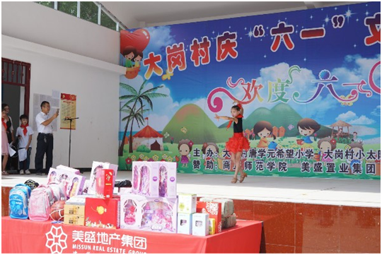 綠樹陰濃夏日長,在天朗氣清的季節(jié)里,美盛地產(chǎn)集團(tuán)高管及員工代表于6月1日再次來到商丘睢縣蓼堤鎮(zhèn)大崗村“唐學(xué)元希望小學(xué)”,參加了學(xué)校組織的六一兒童節(jié)文藝聯(lián)歡會并為孩子帶去了節(jié)日禮物。