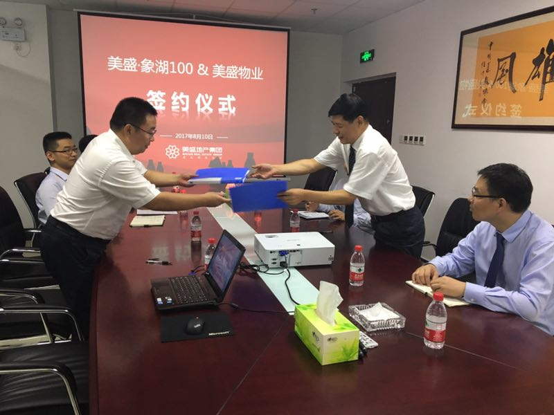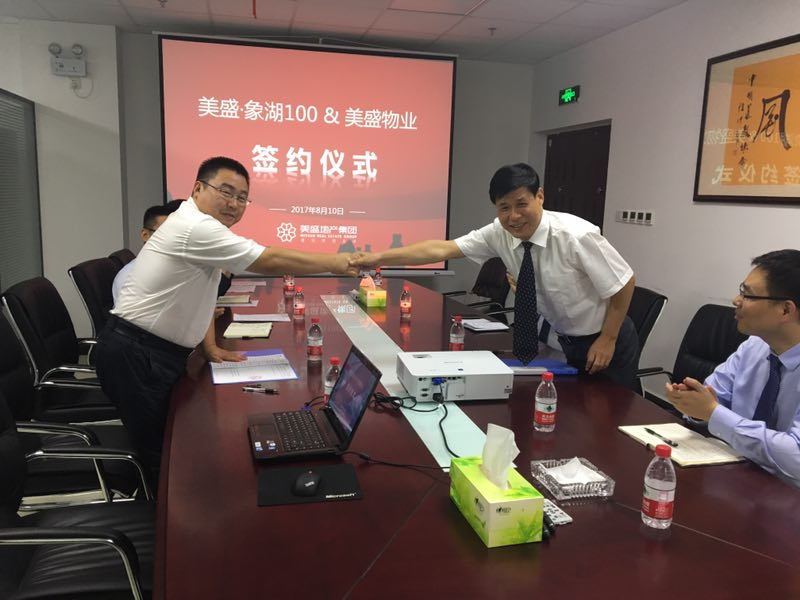 2017年8月10日下午,美盛•象湖100項目與河南美盛物業管理有限公司鄭州分公司正式簽訂戰略合作協議,共同推動全方位深入合作事宜。