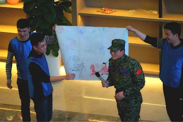 高效協作,分秒必爭;充分的民主后,意見集中。在小隊長的統籌帶領下,15分鐘內準備好團隊文化展示——營長,隊長,隊名,隊旗。