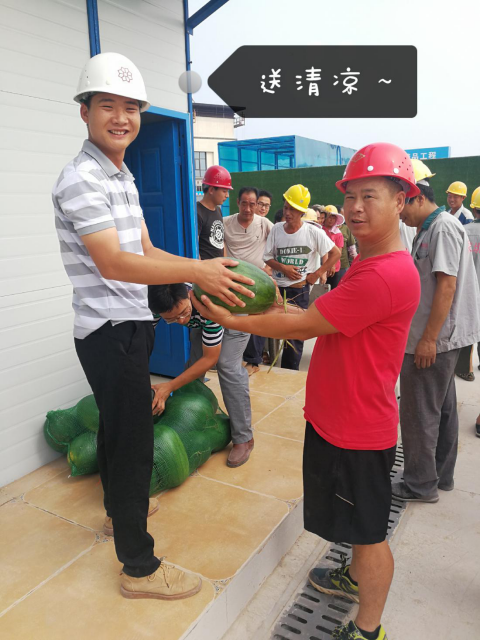 盛夏的八月,考慮到在烈日下工作的工人,李龍為他們送去西瓜、礦泉水等解暑。細節見人品,確認過眼神,是暖男無疑了。