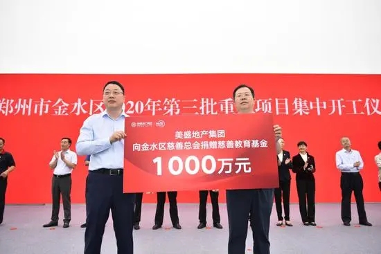 2020年9月,鄭州市2020年第三批重大項目集中開工儀式現場(金水區分會場),美盛地產集團常務副總裁徐建民先生代表美盛集團向鄭州市金水區慈善總會捐贈1000萬元教育基金。