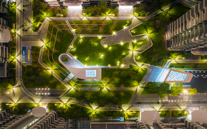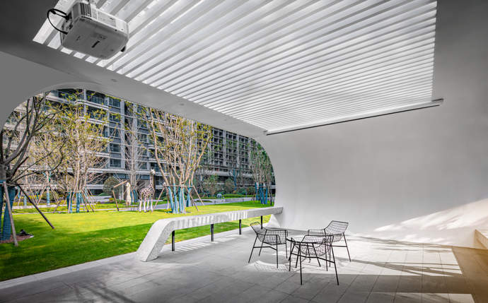 舉目環(huán)顧,飽含設(shè)計(jì)者智慧與巧思的圍合式排列建筑,帶來開闊視野,中心區(qū)域打造景觀大中庭消弭了建筑的壓迫感,充足的戶外空間、起伏有致的坡地景觀,讓開闊感與通透感撲面而來。