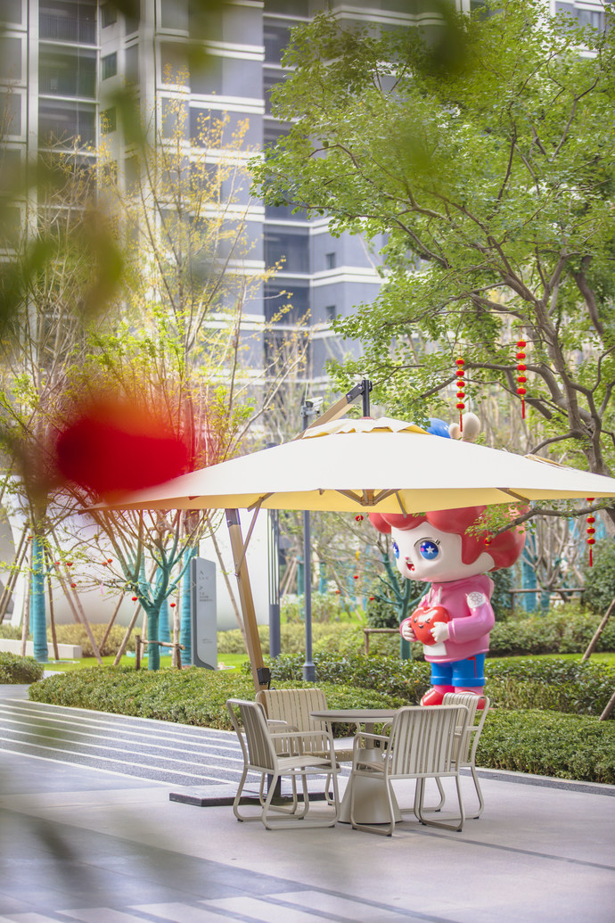 藝術(shù)氛圍滿滿的會客廊庭,滿足業(yè)主休閑洽談等需求,斥資數(shù)十萬元專設(shè)投影設(shè)備打造的戶外星空影院,孩子們隨時可在這里與電影中的主人公一起開啟一場星空奇夢;就連環(huán)繞整個社區(qū)的健康跑道,都參考賓夕法尼亞大學(xué)景觀道進(jìn)行打造,跑道邊上還刻著常春藤八大名校的校訓(xùn)名言。