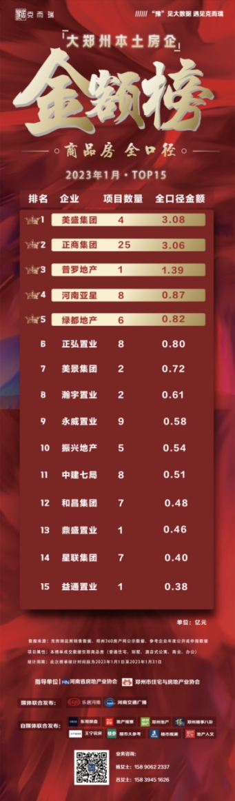 1月狂銷超7億,霸榜大鄭州本土房企金額榜TOP1;