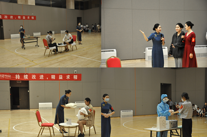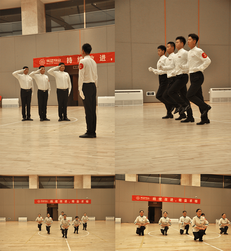 良好的形象塑造,是為更好的日常物業客戶服務工作。5個項目代表隊通過走、站、坐、蹲、指引等動作展示團隊風采。