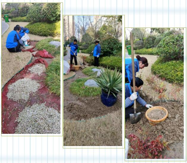 一次園區巡查,吳大姐注意到小區2號樓北邊綠化帶的石子,因經常被孩子們當做玩具亂扔,有點變色,影響園區的美觀。于是帶領員工將變色的石子清除,秉持環保和節約理念,用平時收集的花盆栽種了一些花卉,不僅使園區綠化帶煥然一新,同時也將資源利用最大化。業主每次走到這里,都會頓足觀賞半天,贊不絕口。