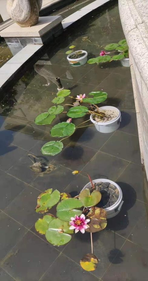 南門的噴泉水景過于單調,她找來睡蓮,放在水里,不僅凈化了水景,同時也讓噴泉看起來更加美觀。