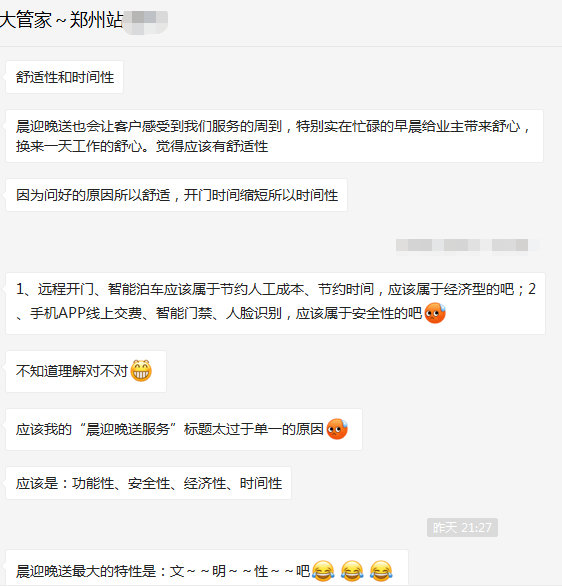 通過兩天的學習,管家們對為客戶服務的理解有了更深層次的提升。為客戶提供有細節、有儀式感的服務,不僅關注客戶需求、客戶體驗,同時引領需求,服務設計始終以客戶體驗為中心。